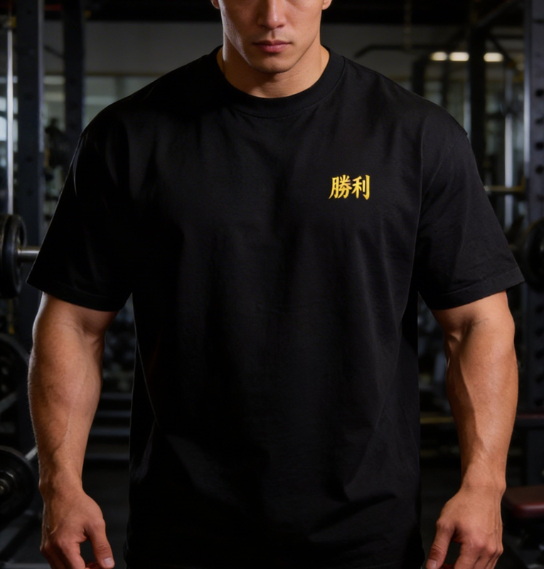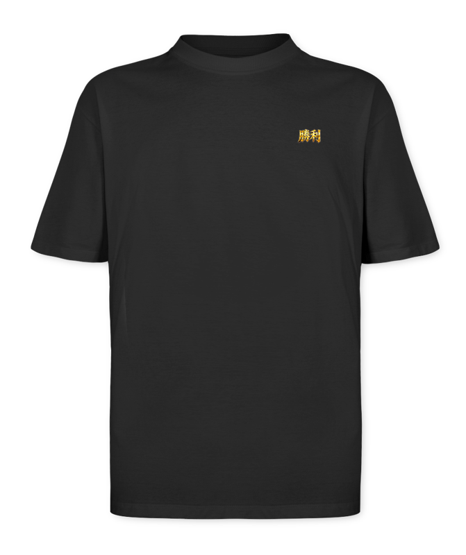 A arte expressa transcendência e domínio absoluto, enquanto o kanji frontal representa a vitória após a destruição interna.
