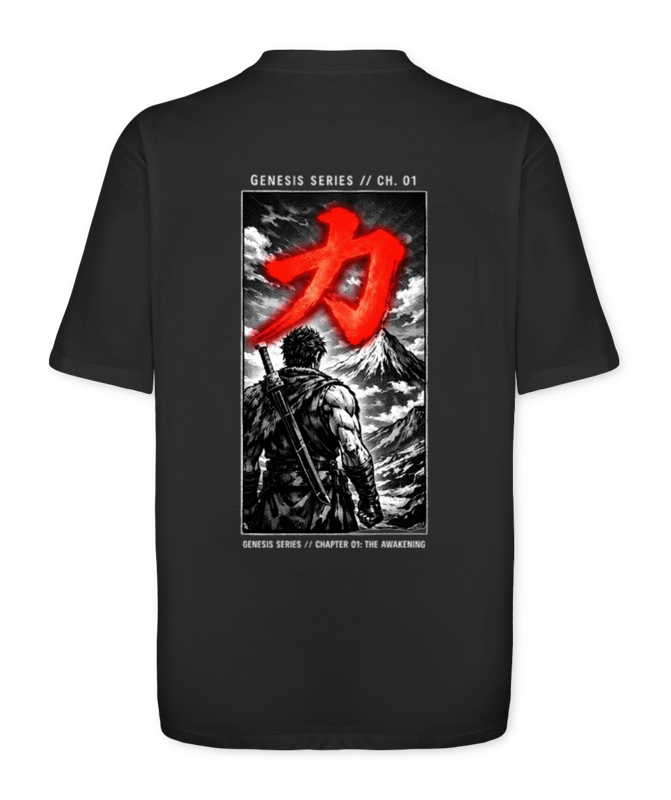 Com estampa traseira impactante e kanji frontal em destaque minimalista, essa peça simboliza o despertar da consciência e o primeiro contato com o desconhecido.